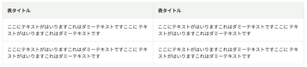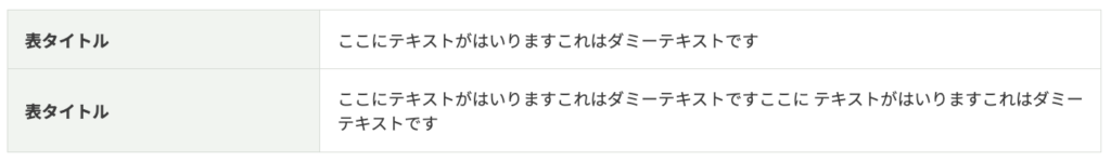 | 表タイトル | ここにテキストがはいりますこれはダミーテキストですここに テキストがはいりますこれはダミーテキストです |