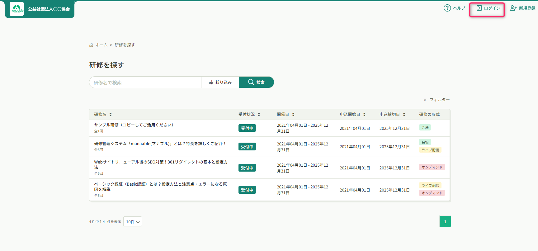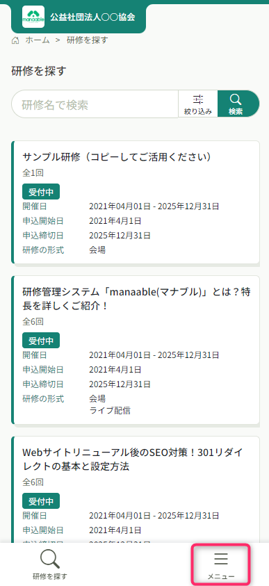 • 登録したメールアドレスの変更をする場合、ログインが必要になります。登録したメールアドレスを忘れた場合、各研修運営組織にお問い合わせください。